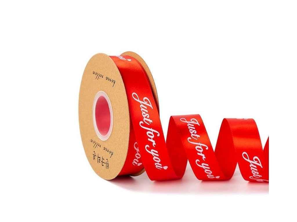 Стрічка атласна 2,5см * 29,5м червоний з написом Just for You (АБ-246) ТМ КИТАЙ